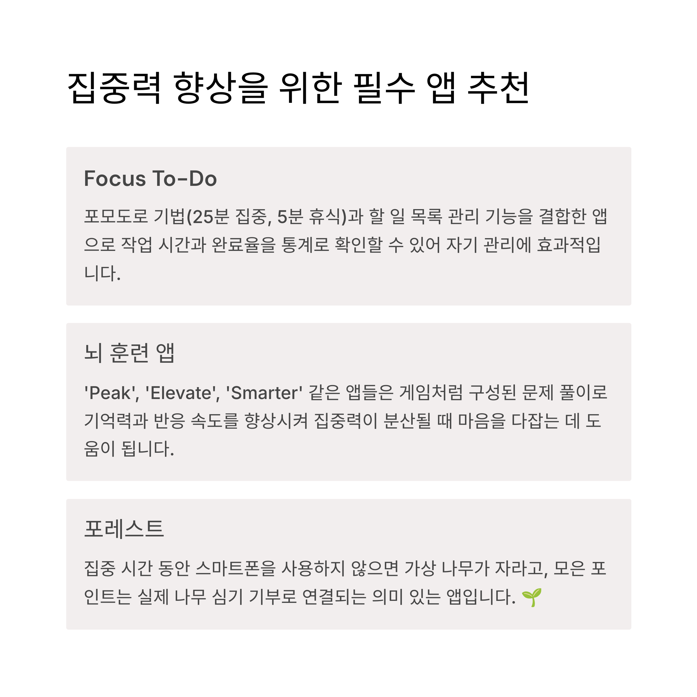 집중력 훈련 앱으로 뇌 깨우기 🧠